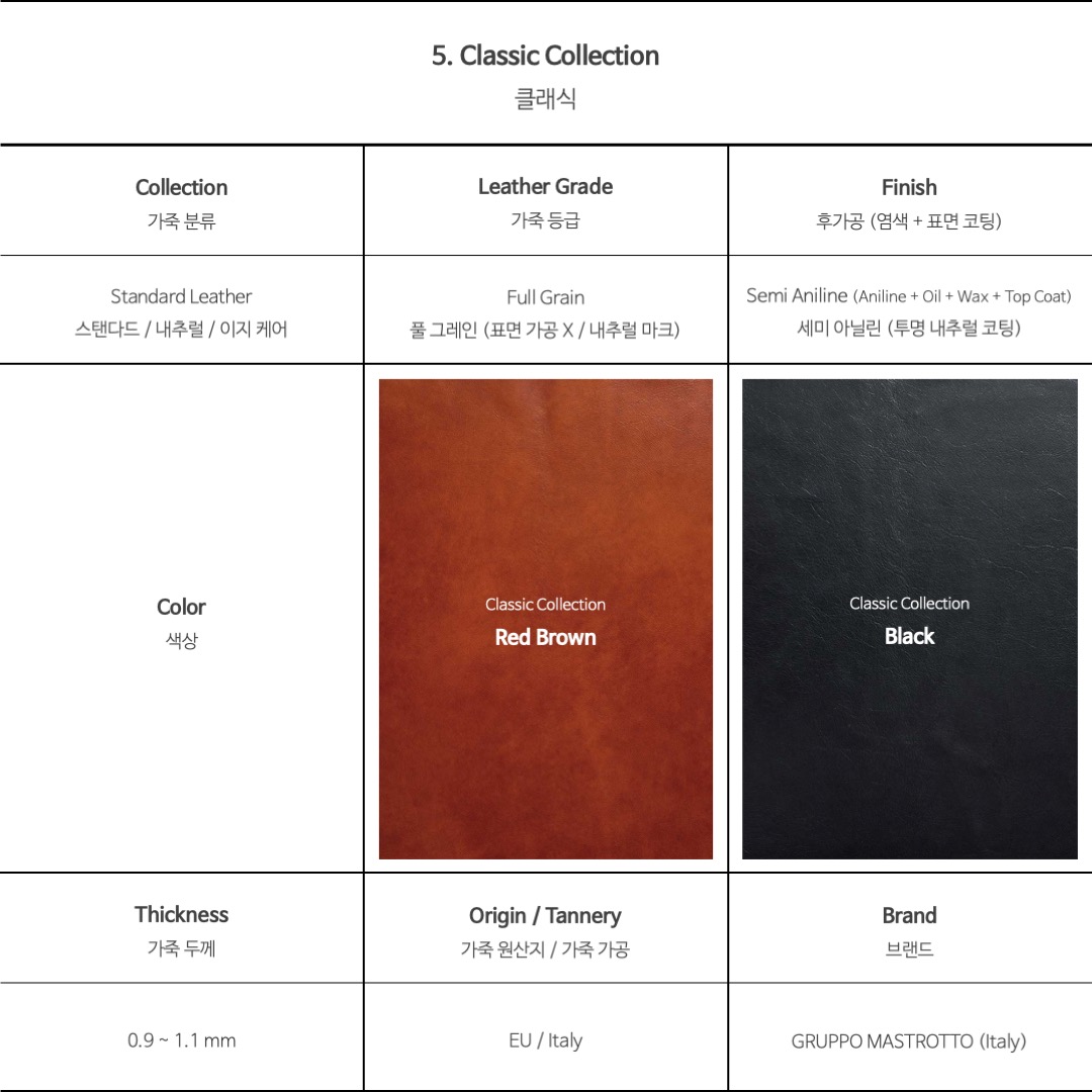 - Standard Leather Collection. (Semi Aniline - Top Coat Ver.)