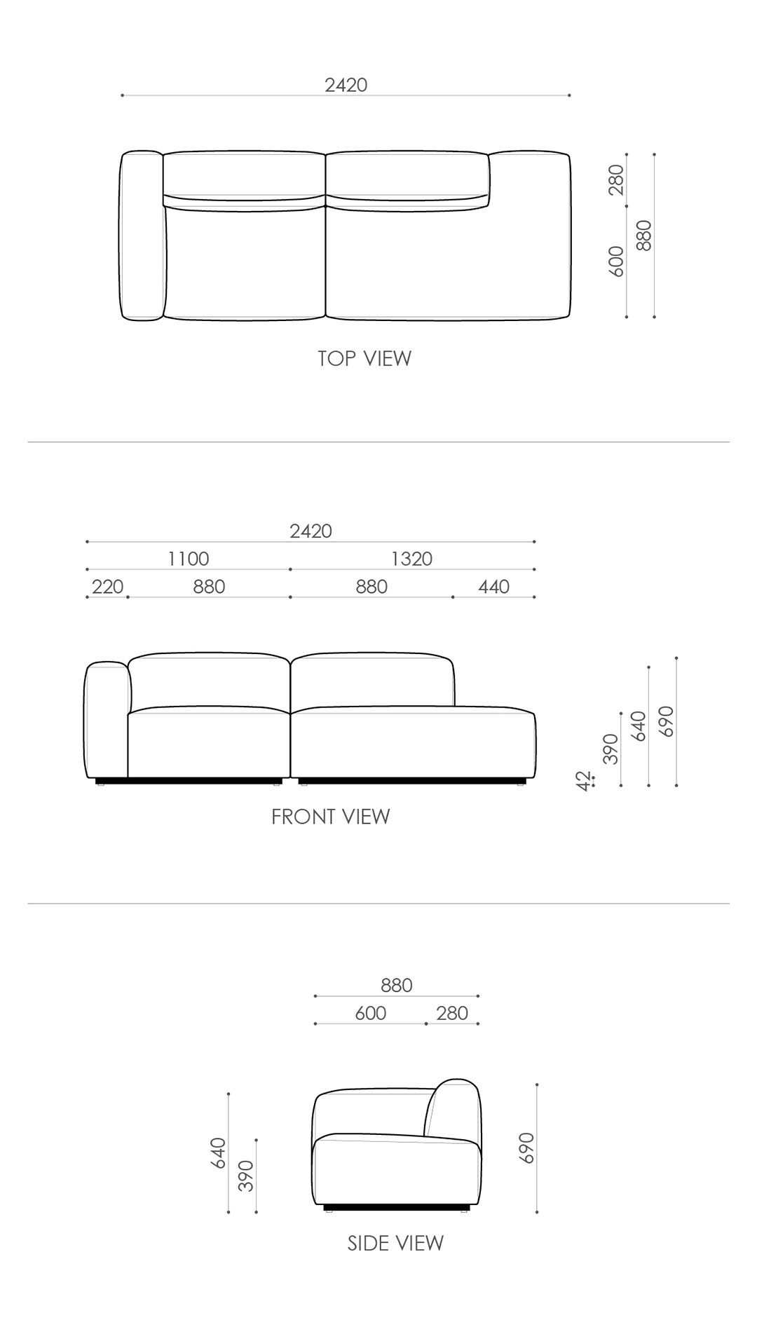 - 2420 (가로) X 690 (높이) X 880 (깊이) mm