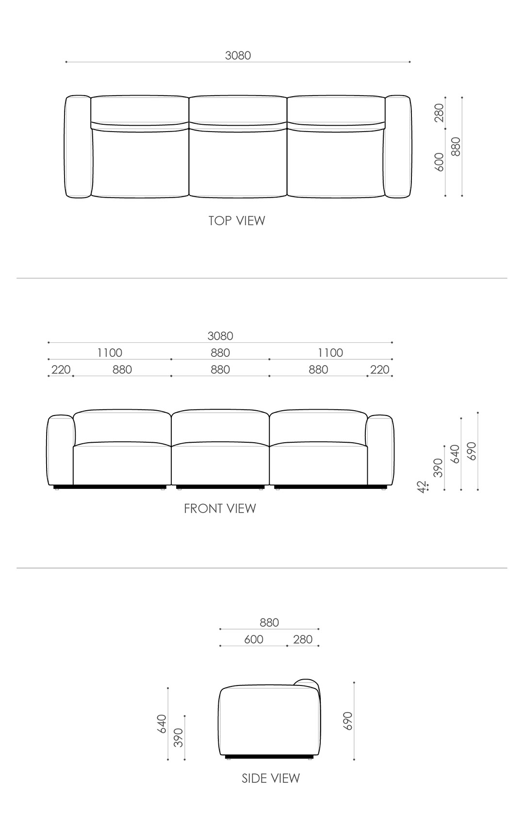 - 3080 (가로) X 690 (높이) X 880 (깊이) mm